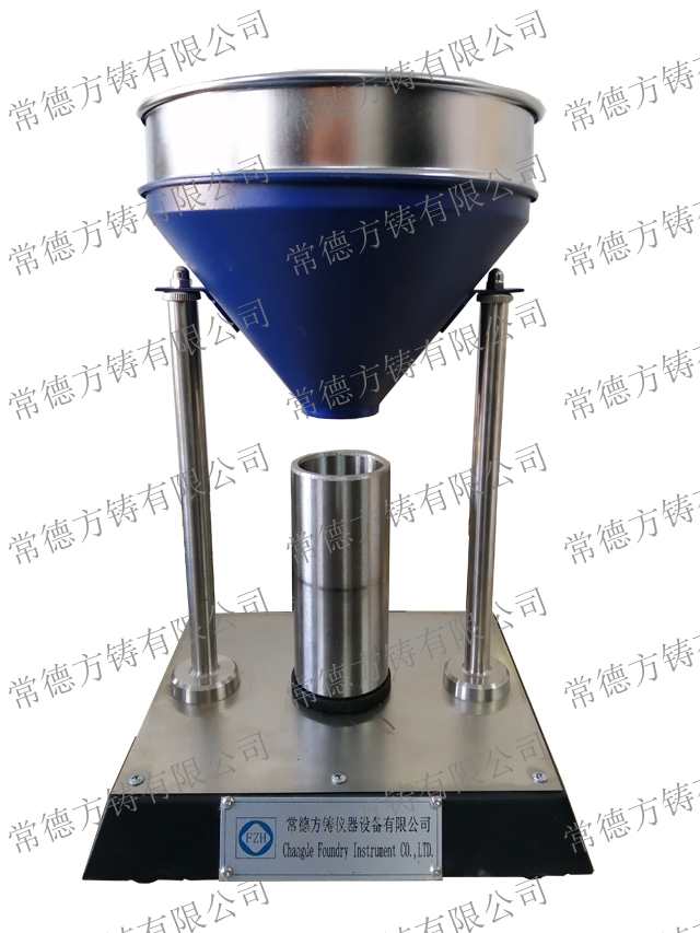 型砂投入器是一种简单的实验用器具,作为一种使型砂松散的工具,它将使制备的型砂试样性能均匀。它与SAC制样机或液压制样机配合使用,能保证型砂从确定的高度装入SAC制样机试样筒内,以精确测定型砂的紧实率。型砂投入器由底盘、筛盘及漏斗组成。
